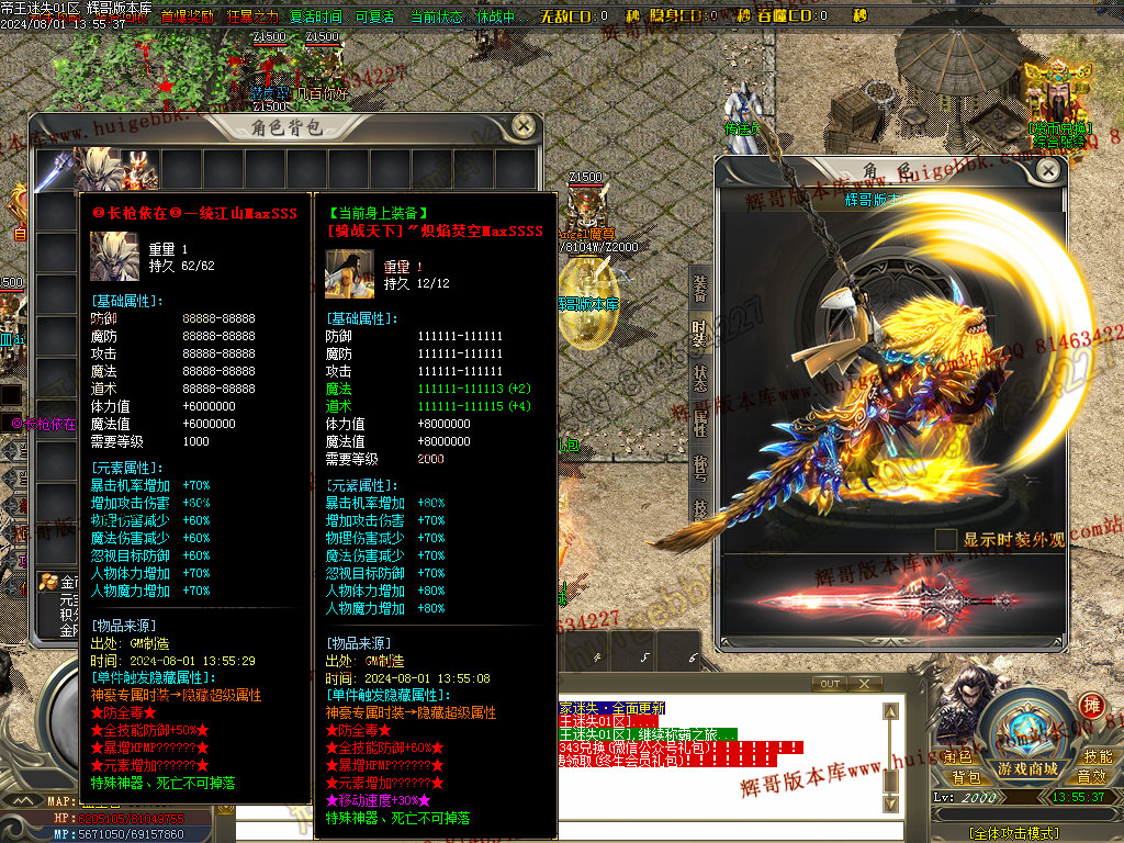 【乾坤玉佩】属性:超级鞭尸+隐身+传送+刀刀切割500W,而且额外提高3倍的爆率!