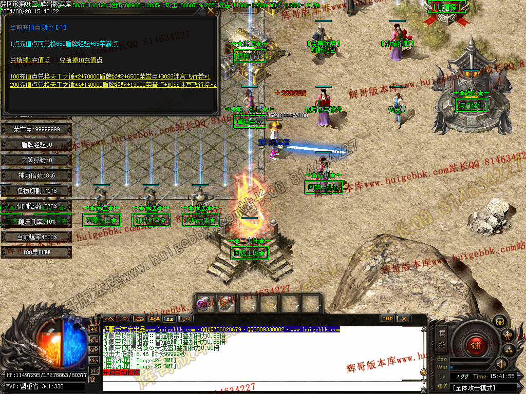 永久沙捐:28充值点 狂暴之力:20元宝 唯一终极回馈礼包N多材料 爆率 切割 高级称号 无限麻痹宝宝 均可