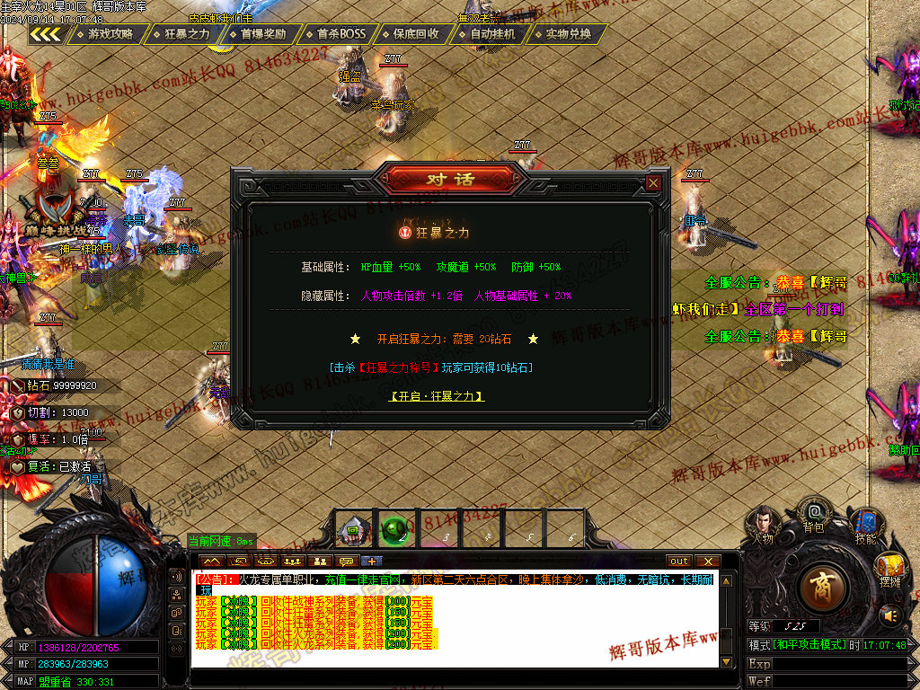 注:由于开区演示站点不定时更新更换版本 具体以本帖演示为准