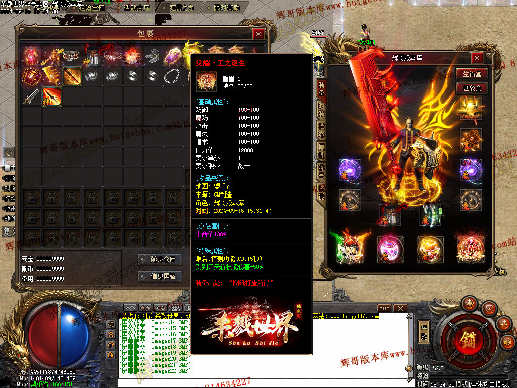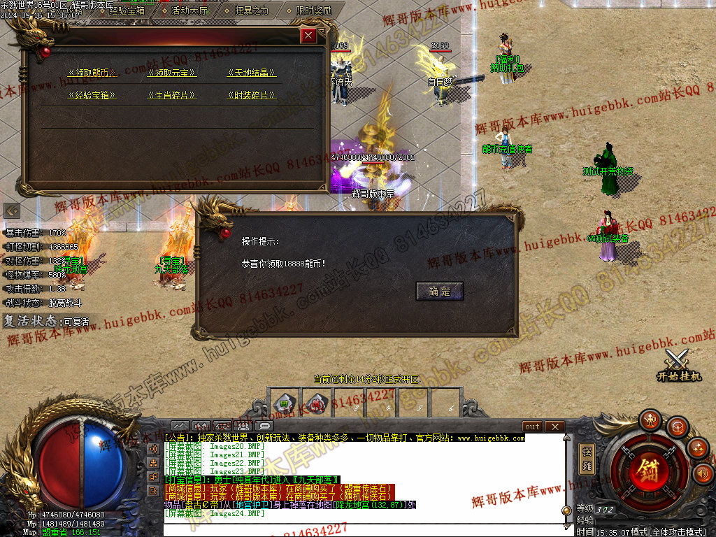 6.◆◆◆大荒领主√创世神◆◆◆: 合区后每三个小时刷一只,位于大荒世界,必爆高级装备+几率爆专属装备