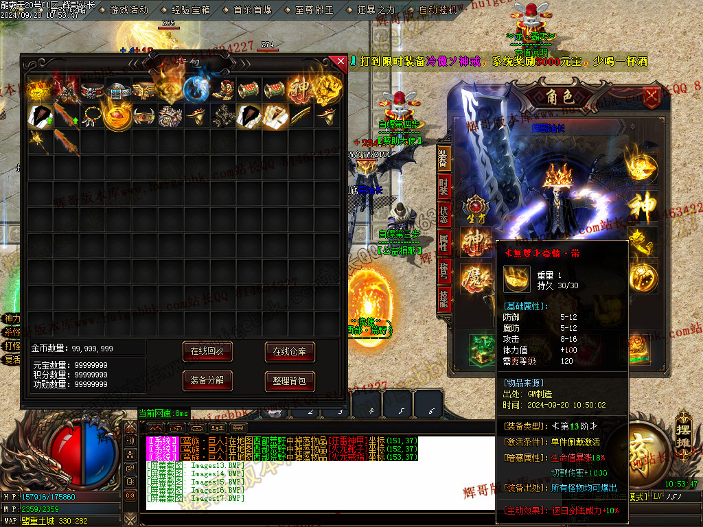 开通冠名大哥.赞助大使.沙捐.狂暴.骰王.满称号2205000元宝带刀刀切割怪百分之1的血量.幸运5链子.横扫1大陆1.2大陆满称号地图打神器怪.白怪无限刷!