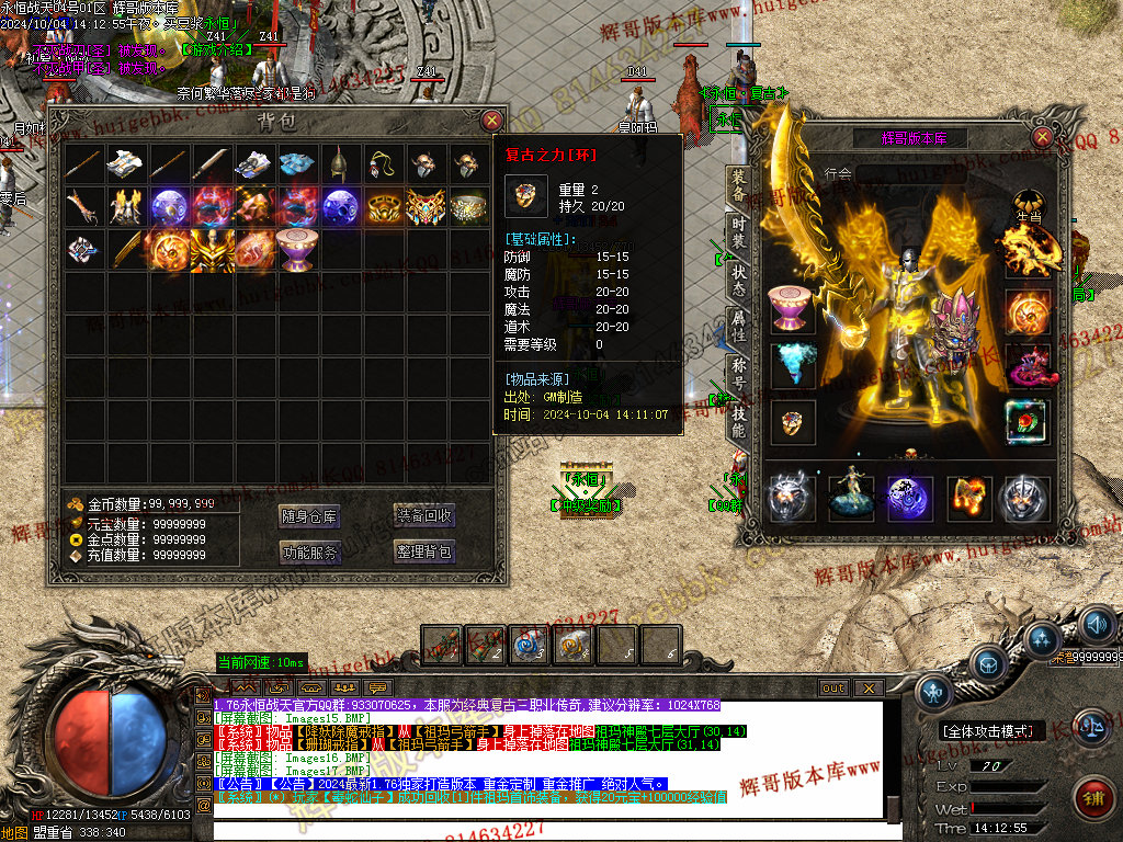 3.血石锻造:需要3个终阶血石+288W元宝+5888金点+88强化神晶合成