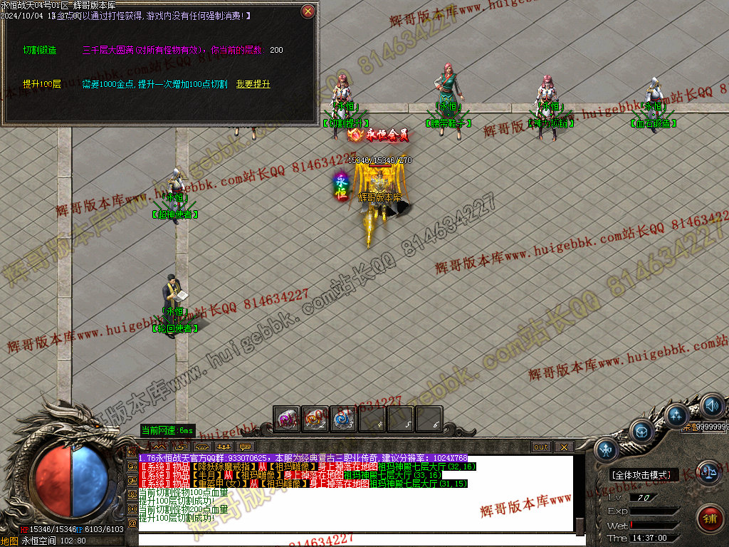 1.切割提升:三千层大圆满,1000点金提升100层,点20次