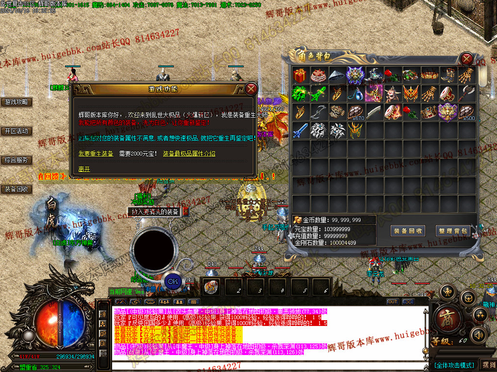 特色③: 道士55级召唤双虎!自动修炼无极真气。横扫各大地图!!