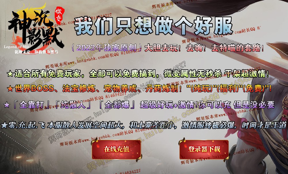 ☆适合所有免费玩家,全部可以免费搞到。微变属性无秒杀干架超激情!☆世界BOSS、法宝修炼、宠物养成、丹药炼制!”(纯玩"(福利"免费)!