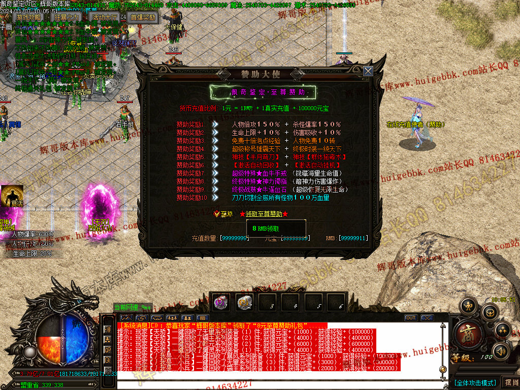 3.赞助专属地图刷新全服所有BOSS,配合礼包赠送的切割值,地图光柱满天飞