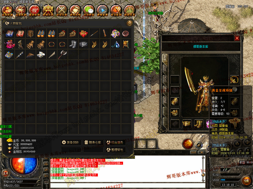 4、装备回收:通过命令[@服务]或者点击药品快捷栏的[金钻服务]按钮实现在线回收,可获得丰厚经验和元宝。