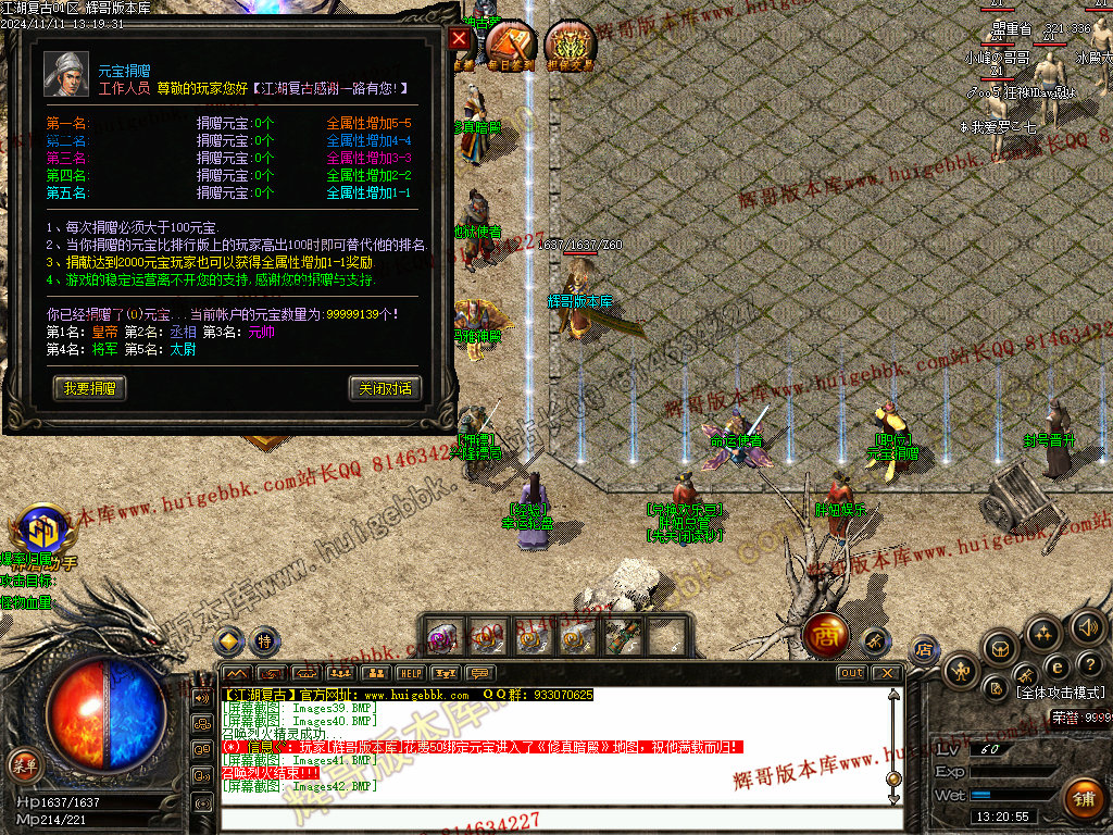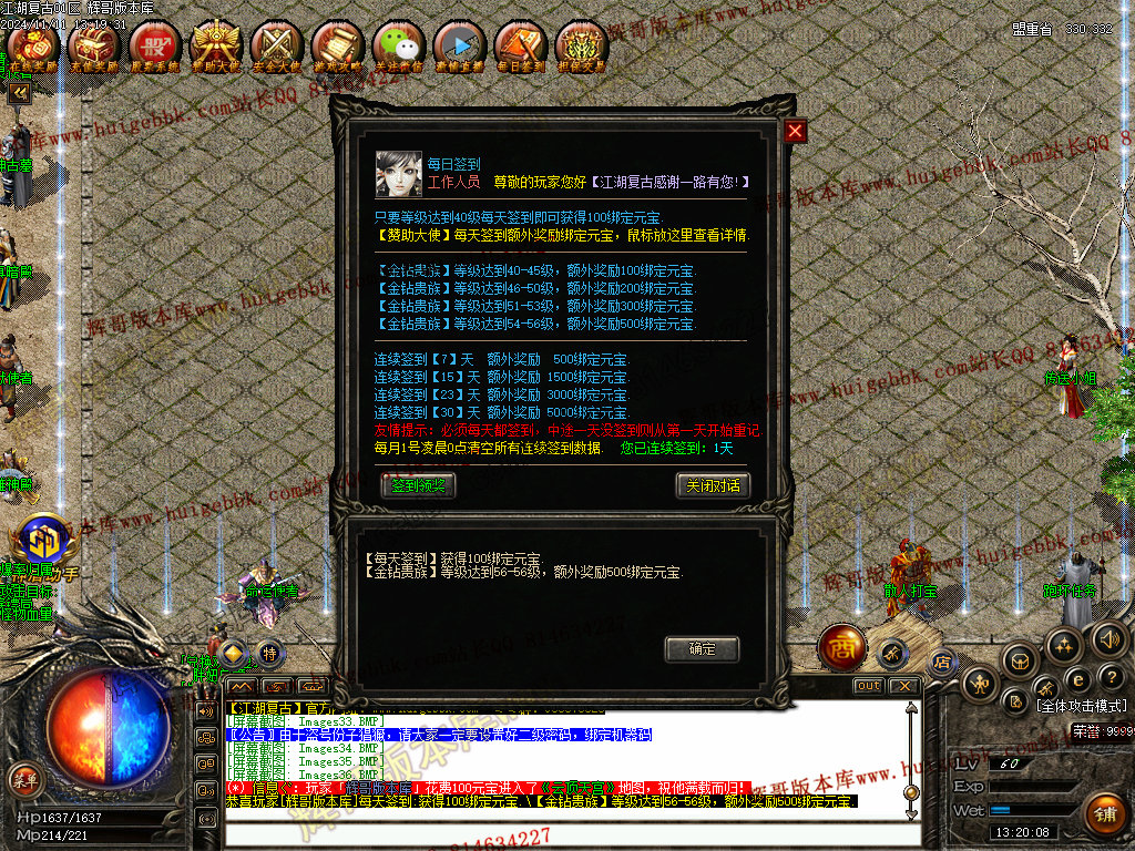 2、幸运转轮:npc坐标盟重省322.342,100%中奖,是快速获得经验、元宝的一种途径。