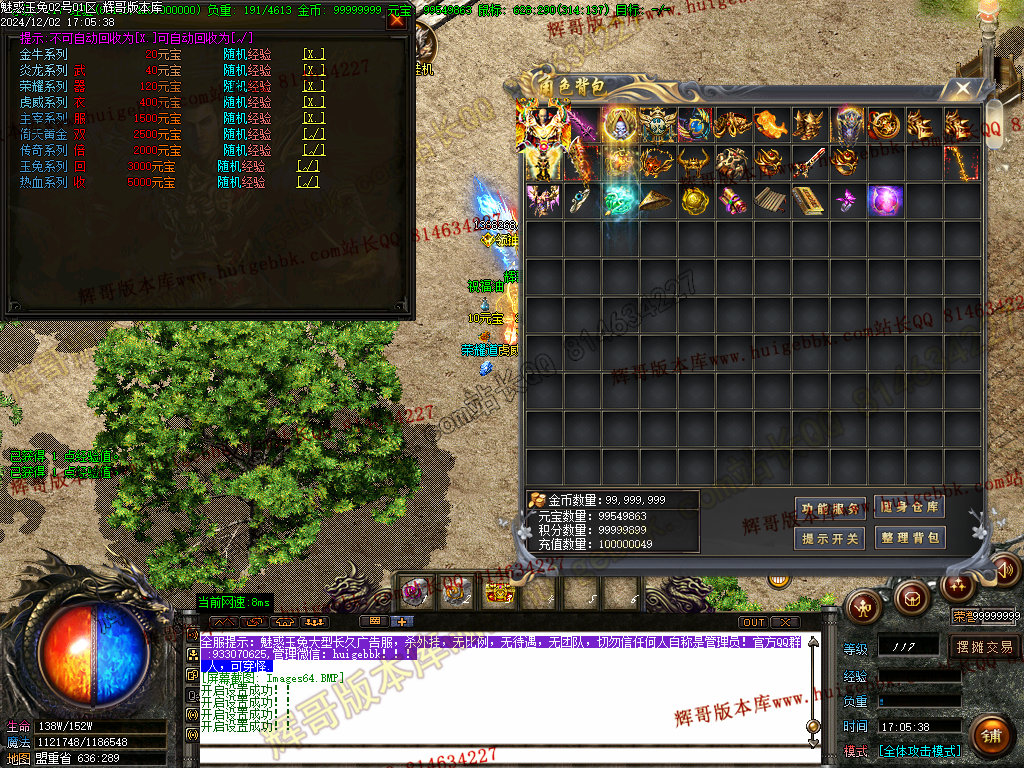 5.本服为回馈玩家,充值比例★五十倍★充值请到充值点我NPC充值,本服的货币分为4种,元宝,充值点,积分兑换点。充值10,就可以领到10充值点.20积分.20000元宝和10兑换点。用10兑换点可兑换500充值点.1000积分.1000000元宝。