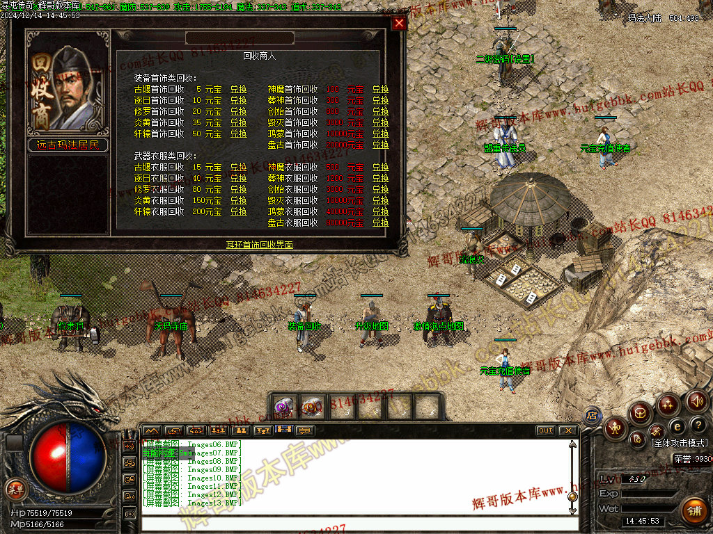 12:装备可以回收元宝.分首饰回收.武器回收.一键回收.方便快捷!!!