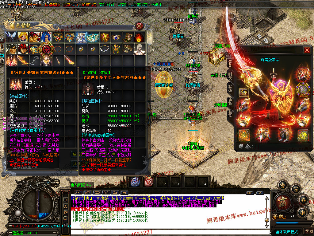 以上只是部分装备介绍.共计1500件特殊神器装备.全部靠打.任何BOSS都有几率爆出.一切看脸.>