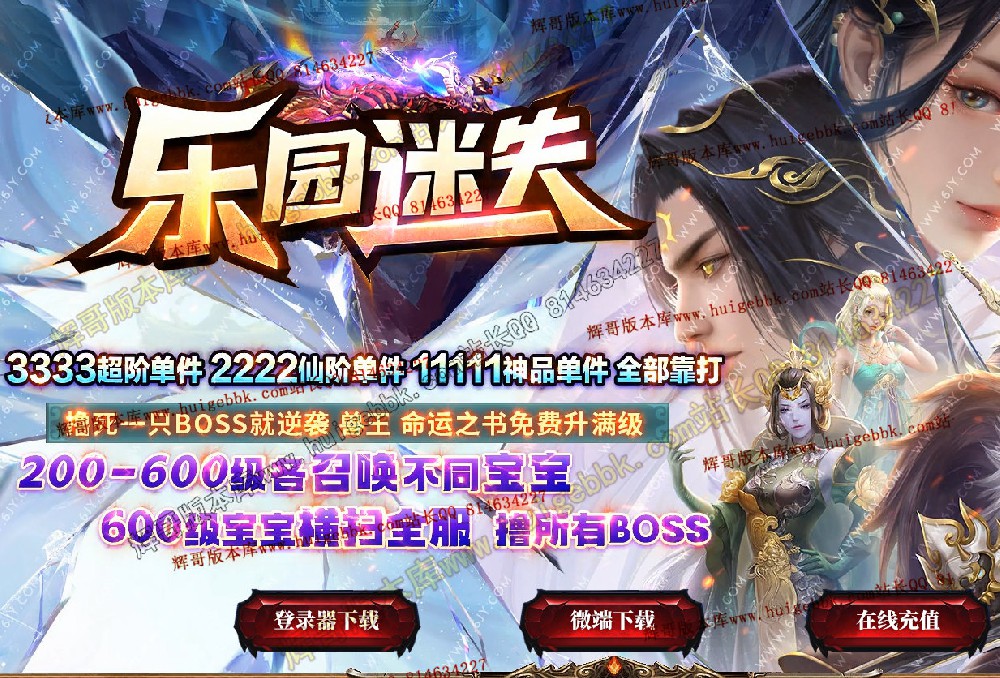 【游戏简介】:|3333超阶单件-2222仙品单件-1111神品单件全部靠打 撸死一只BOSS就起飞
