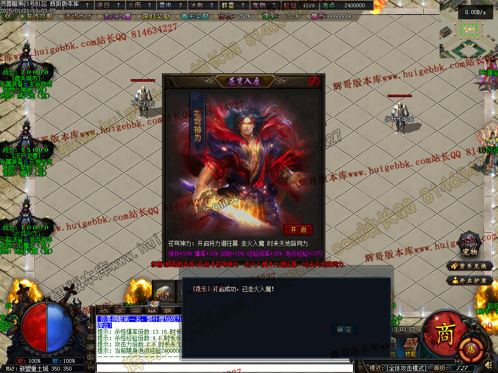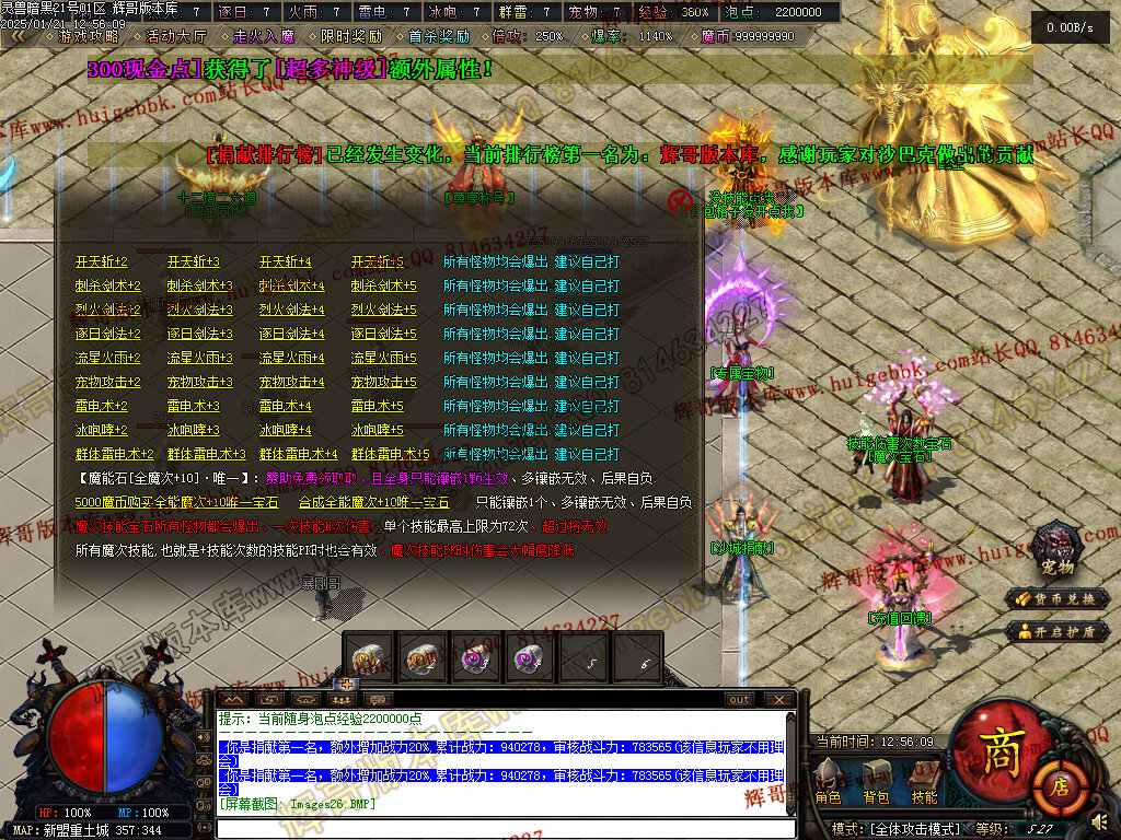 新增大量远程近战神技 同样触发魔次 另外新增终极神技 刀刀群体刺杀:狂舞刺杀 推动火墙神技:龙王护体
