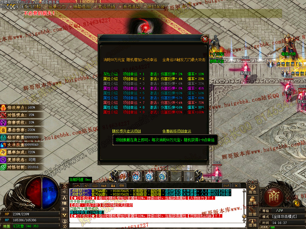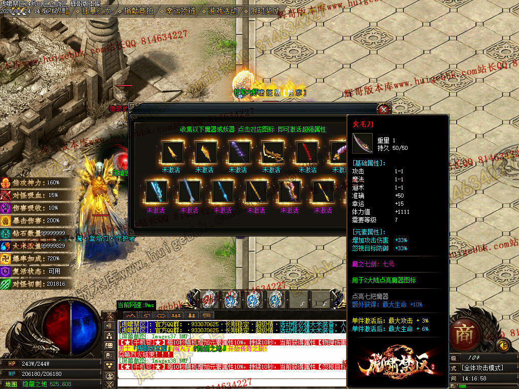 2.沙城捐献:对怪切割+5000 攻击速度+50% 血里提升1888 攻魔道+50 自动回收