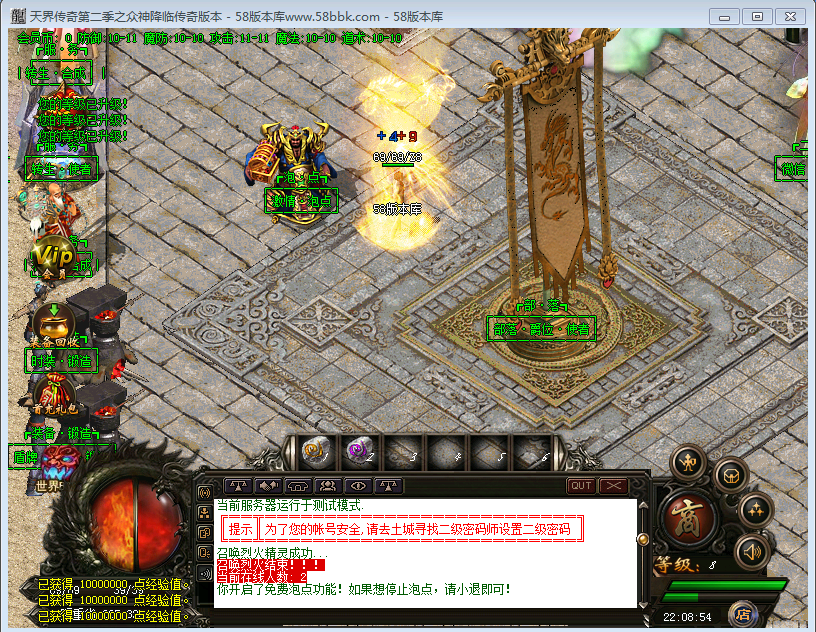 10.每100分钟系统开启爆技能书活动,该活动爆出本服所有高级技能,更有几率爆出首充赠送的会员召唤术。