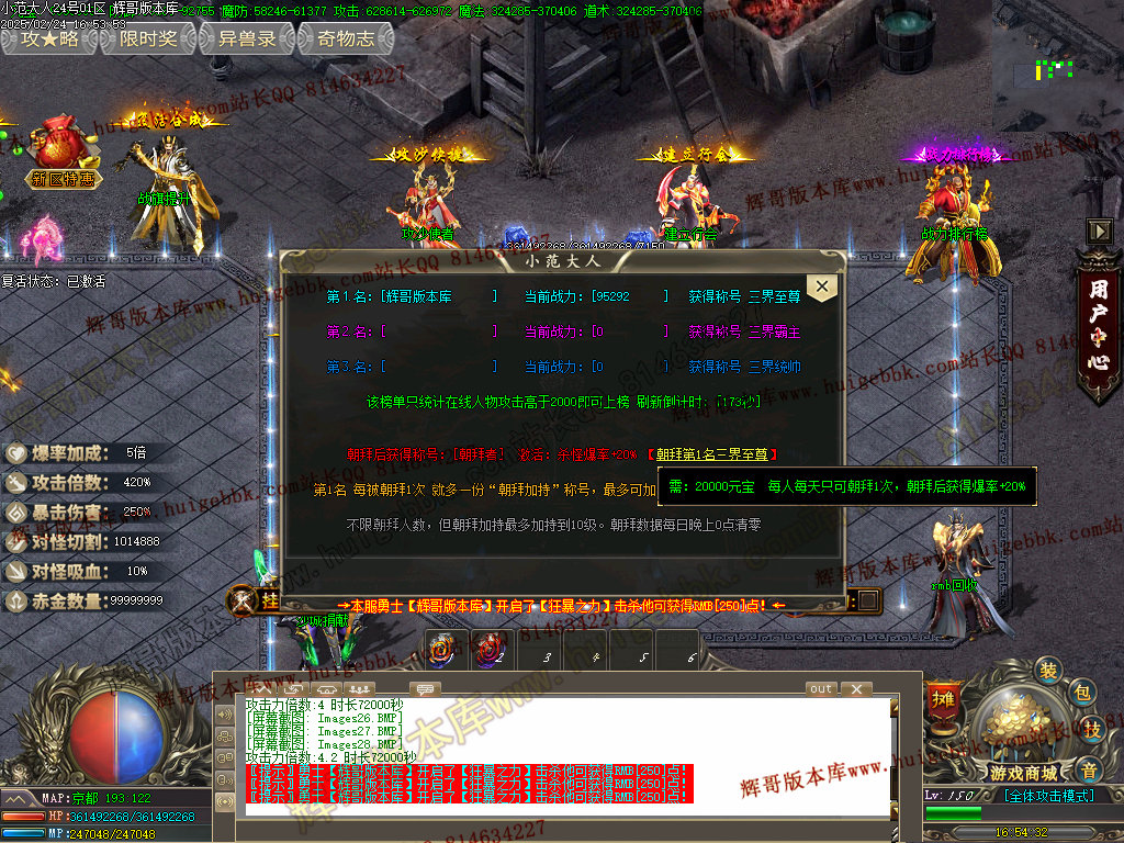 土豪玩家可以领取回馈,下大大陆后进入回馈地图,刷怪速度比普通地图快一倍!