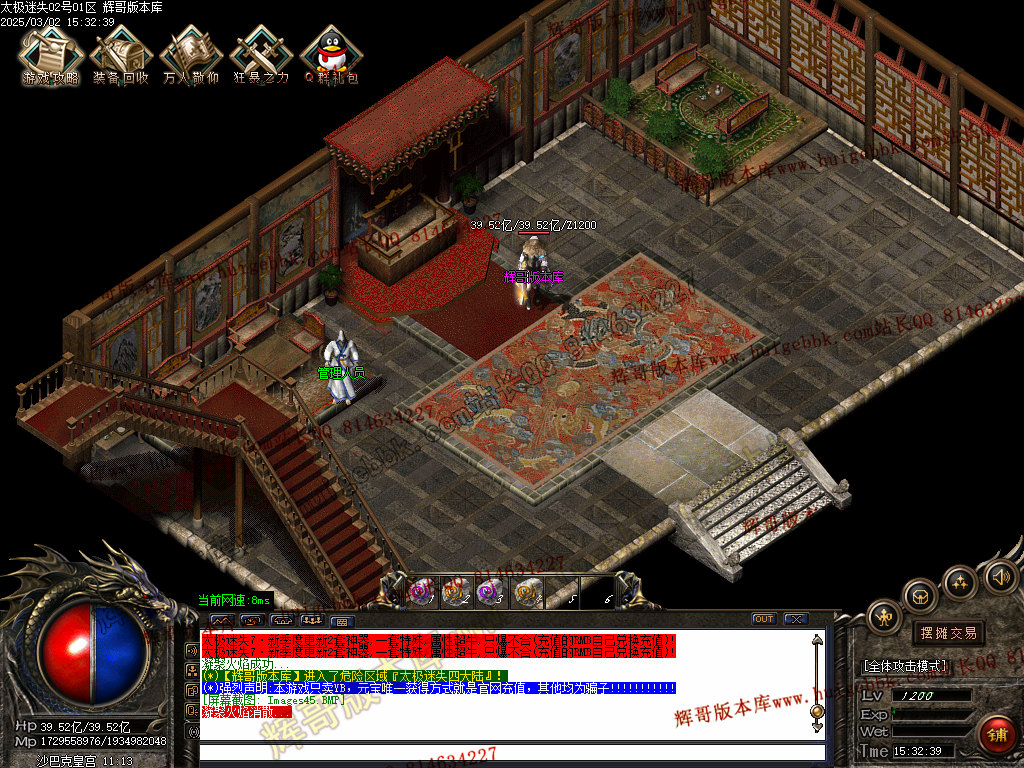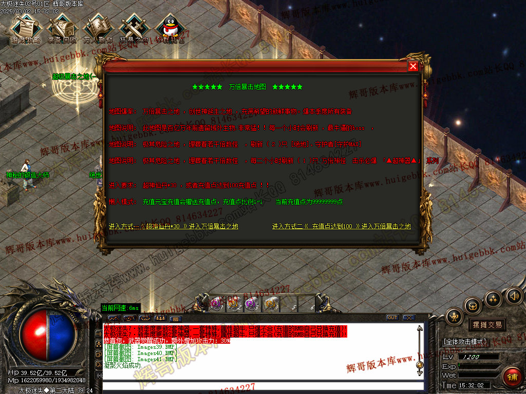 2.新人上线 加群获取!礼包码领取初级切割 先在新手地图打999 9999 怪物 获取一定的元宝 可以在商铺购买14转卷!