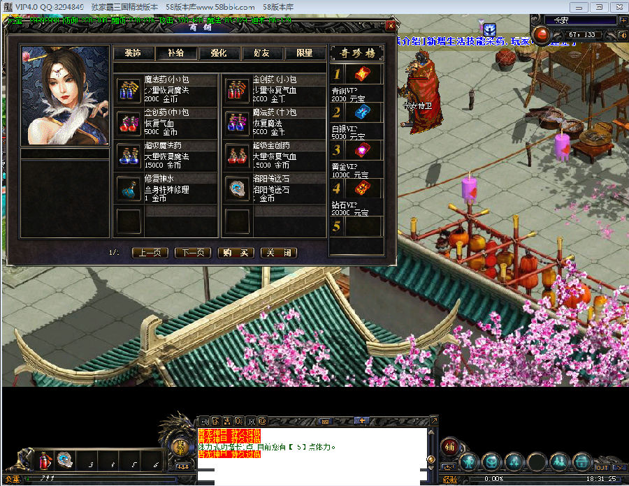 本游戏装备分为:普通套装、圣兽套装、神器、武将之魂、法宝、坐骑、盾牌、时装。