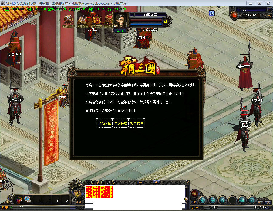 国家战争,每天晚上7点可以通过曹操入场,获得胜利的国家,全体成员将会获得一天的双倍经验和其他的奖励。
