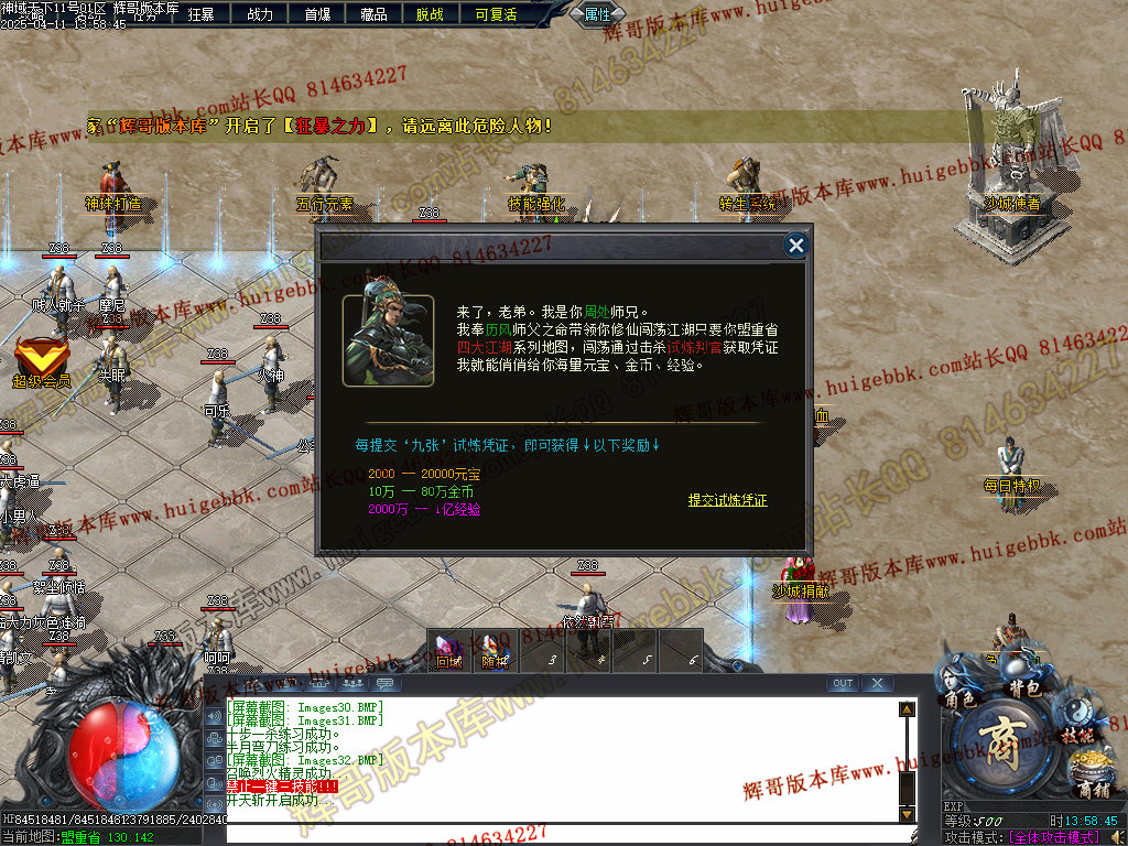 曾梦想仗剑走天涯 ------------ 玩家进入游戏后,可在四大江湖地图,通过击杀试炼判官,高几率爆试炼凭证。可兑换大量元宝、金币、经验。