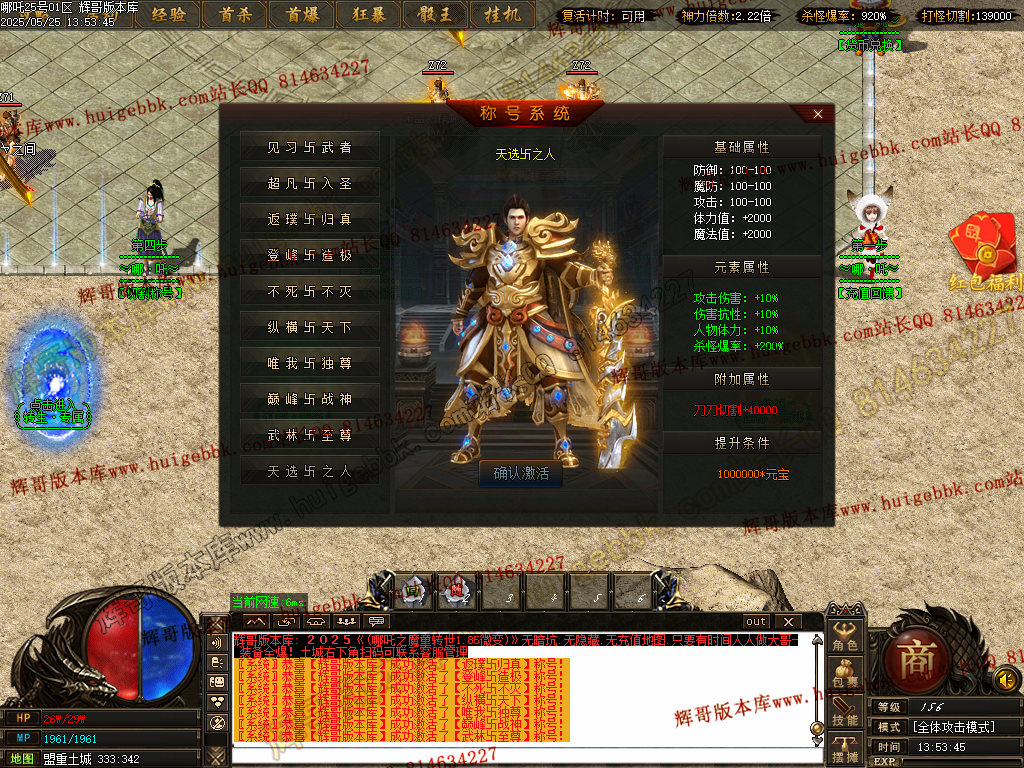 15.增加了斩杀称号Lv1-Lv10 【爆率-切割-血量】