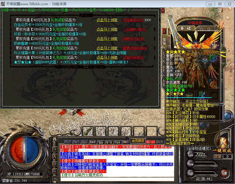 <224,244>【公告】本服所有装备无合成,元宝,装备好打,更有超值暴率!!米素无需元宝,怪物爆出!加星材料--天宫之锤各普通地图爆率高!!