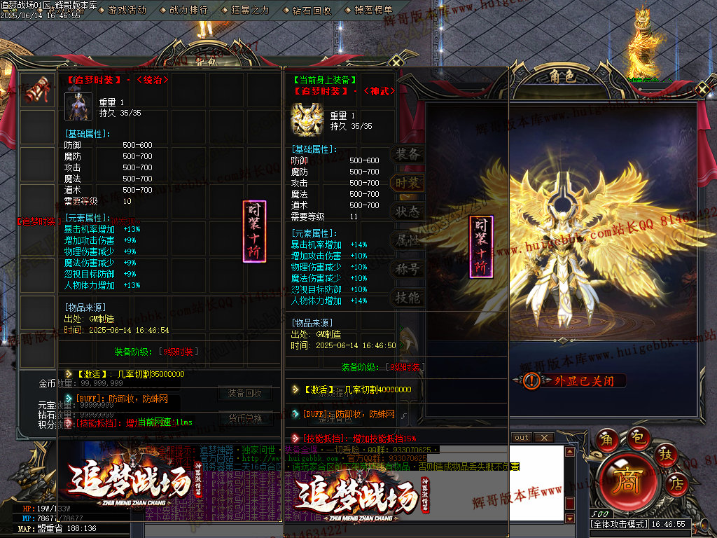 赠送群体施毒+清怪爆率+100%+倍攻+1.5倍+⑨阶7件套+(下四格、盾、时装8阶)+500W元宝 【500钻石】