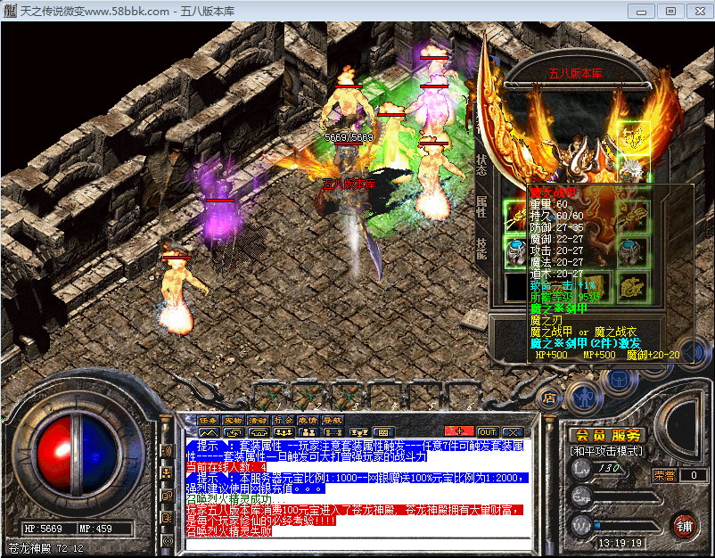 版本介绍:《武神迷失传奇》满转28转.满级1300级。