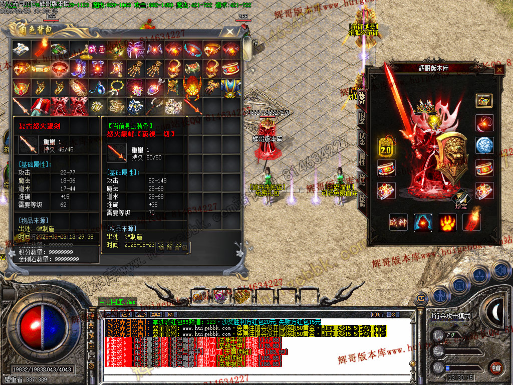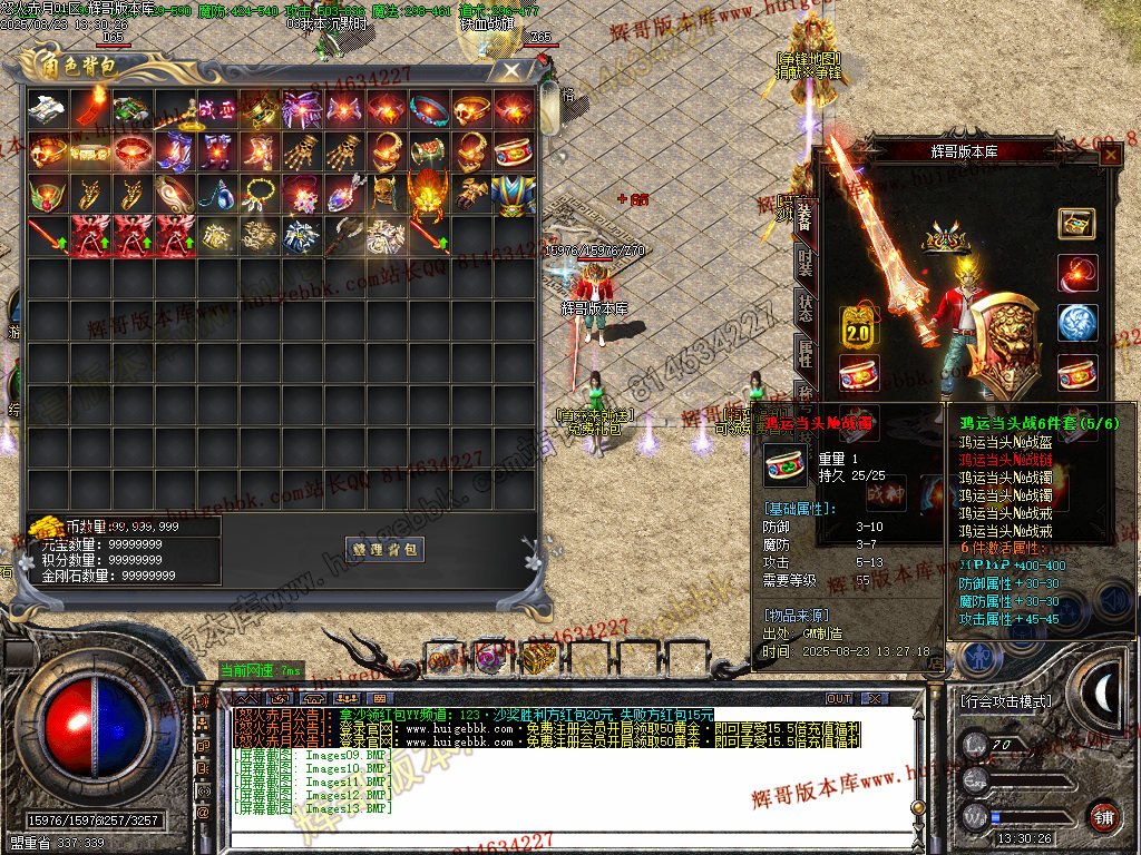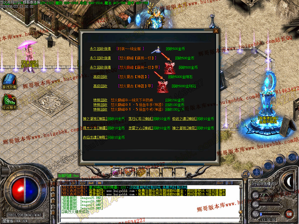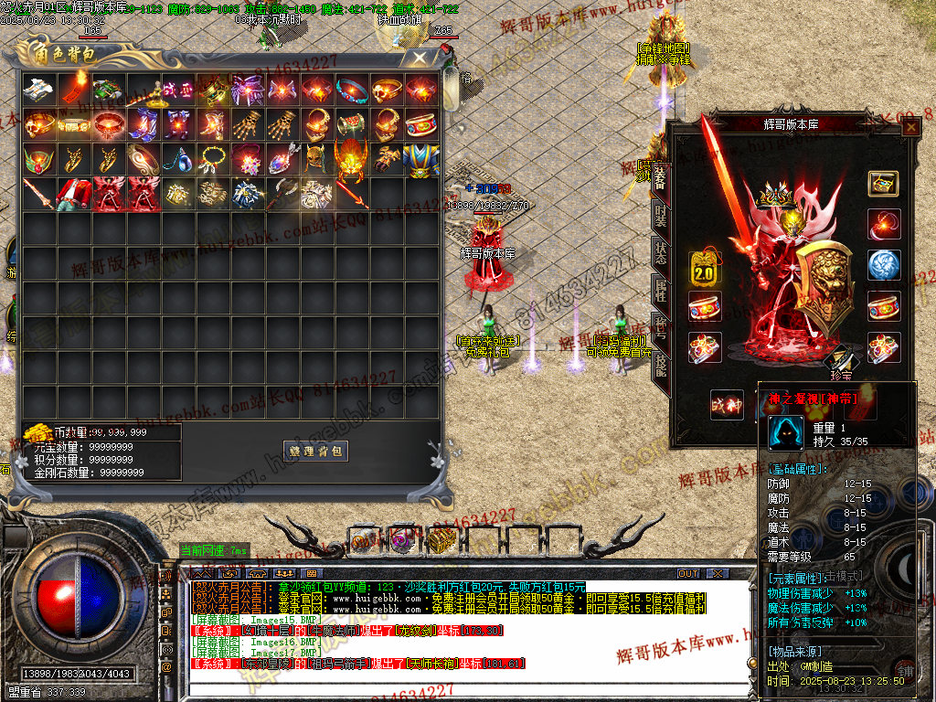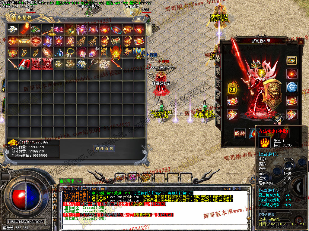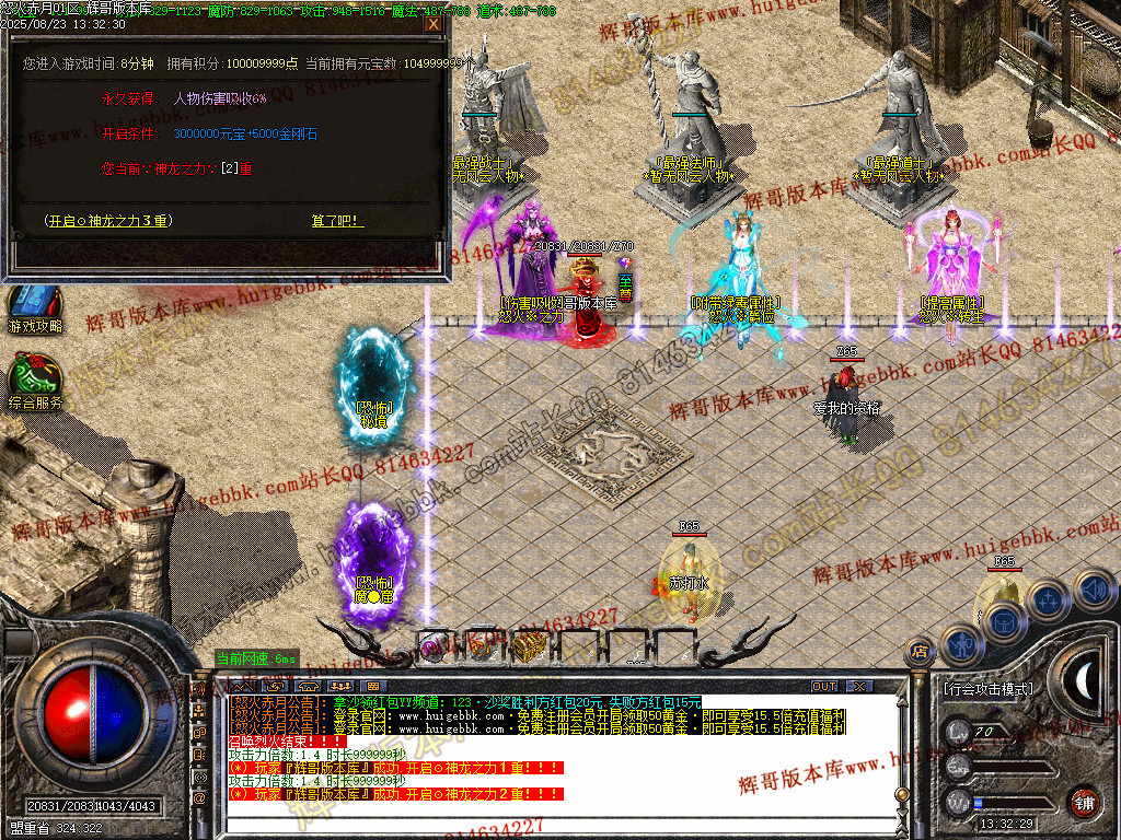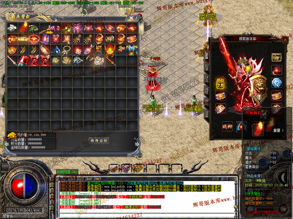 充值一元=10金币您当前金币为:[9999969]建议玩家职业首选战士或者法师