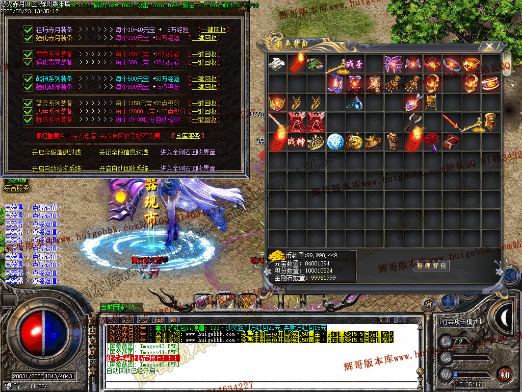 充值玩家88元会员+20元捐献+3元狂暴玩转本服,在线回收箱子自动拾取回收动能
