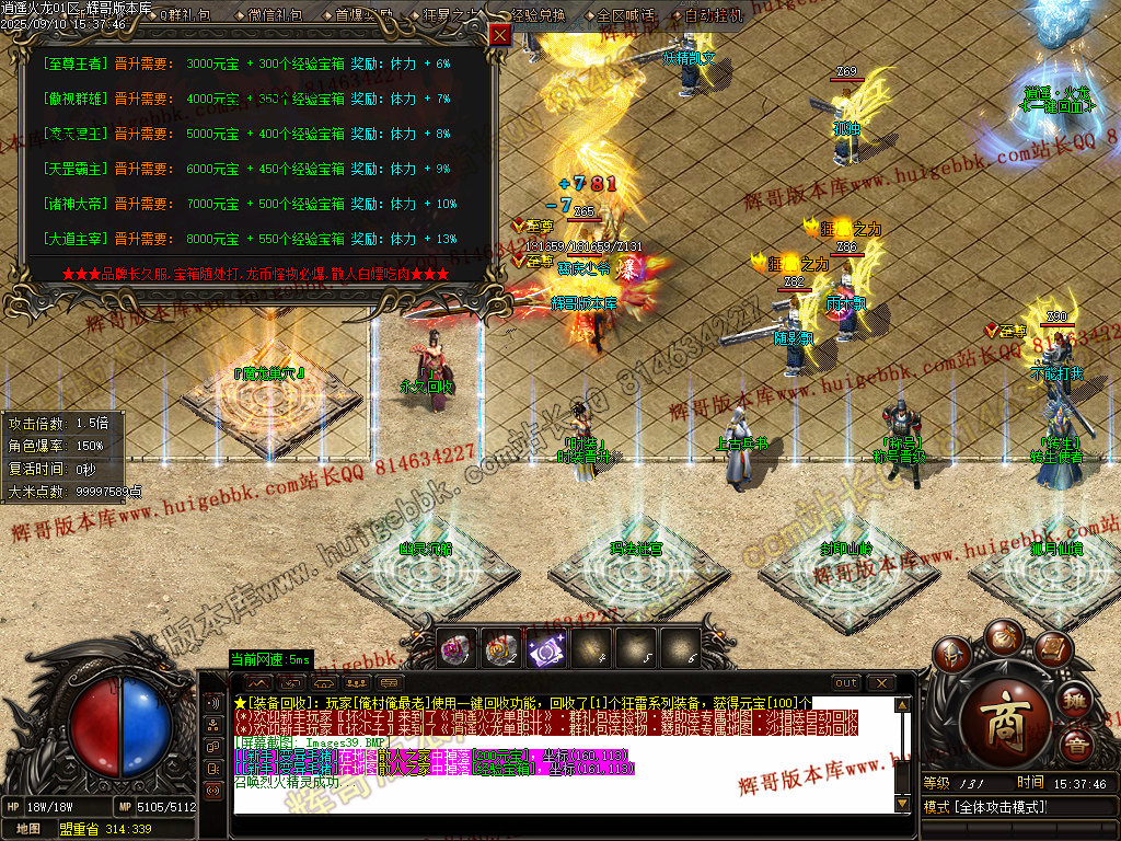 充值大米换元宝或者龙币,提升前期属性,保证能单挑boss,打人、打怪速度