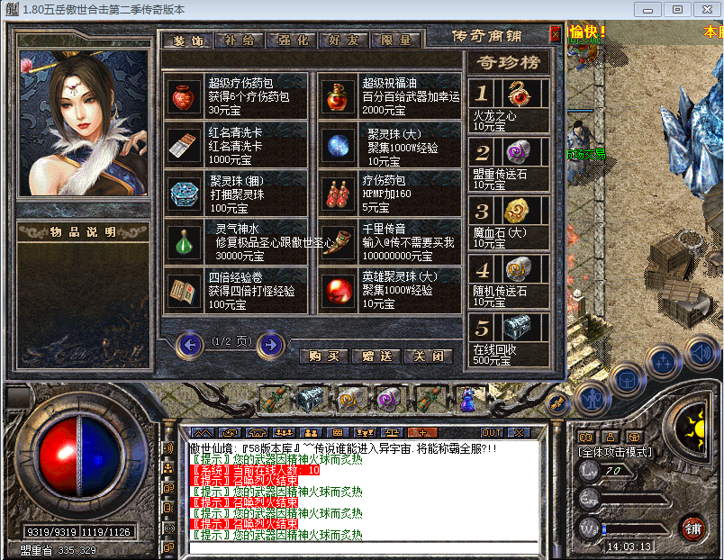 游戏介绍③ 【版本特色】:装备极品属性靠打、小怪BOSS爆积分、高级聚灵珠!