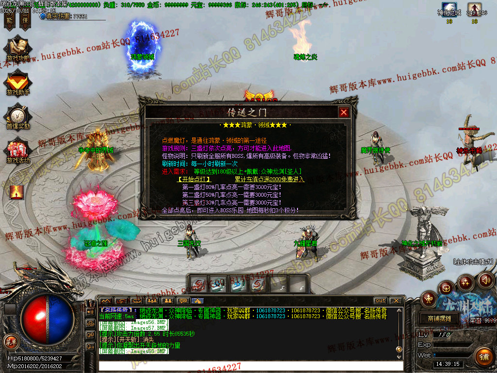 鸿蒙灵域(三界之内杀怪出通道,全服提示):第一季终极地图 刷新所有神化BOSS和无数人形怪物! 掉落终极武器,衣服,生肖类