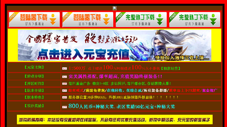 【元宝比例】1:500万 点卡赠送100%网银赠送100%永不暴包【独家经营】
