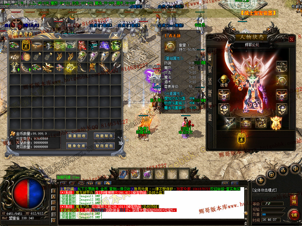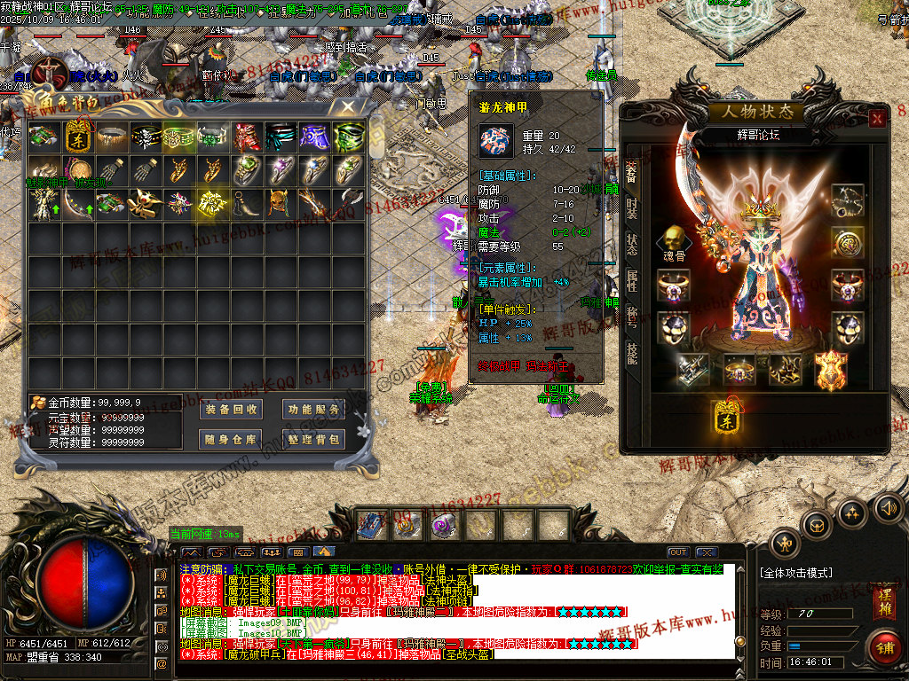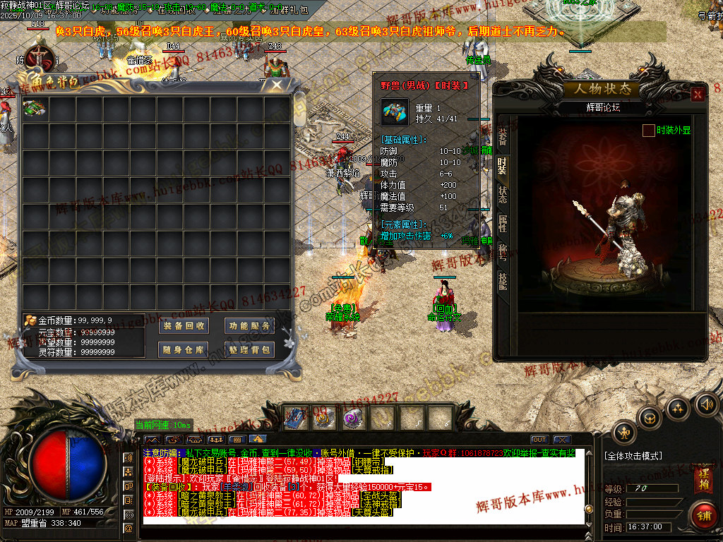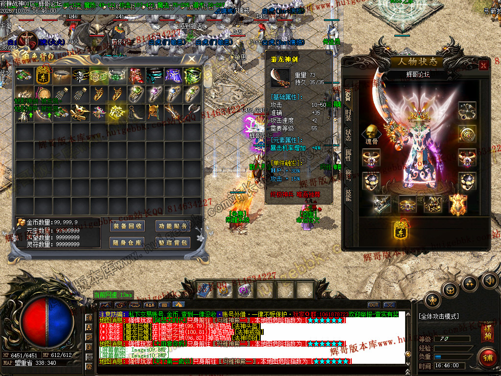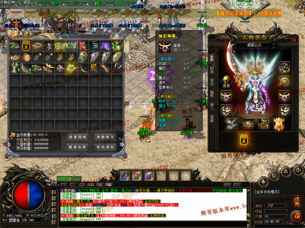 7、本服金币保底,元宝保底,装备保底,每—件装备都是钱.