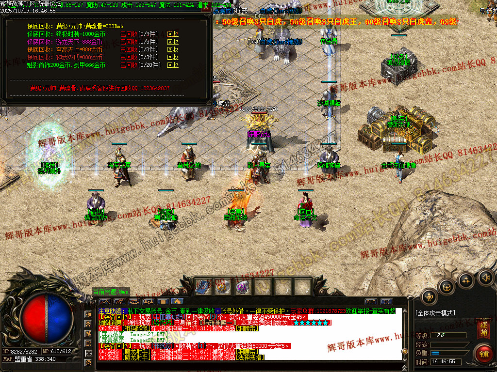 【道士宝宝设置】:50级召唤3只白虎,56级召唤3只白虎王,60级召唤3只白虎皇,63级召唤3只白虎祖师爷,后期道士不再乏力。