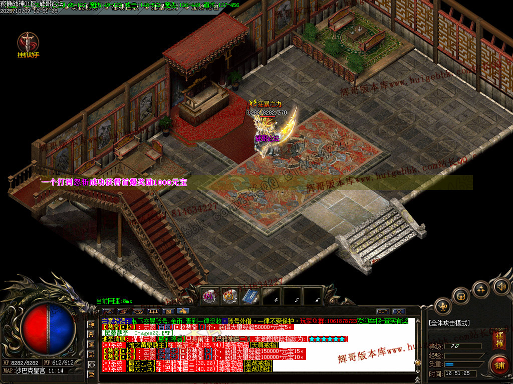 2、攻沙:新区第2天晚16点合区,第三天晚上集体抢沙,首沙奖励海量元宝·