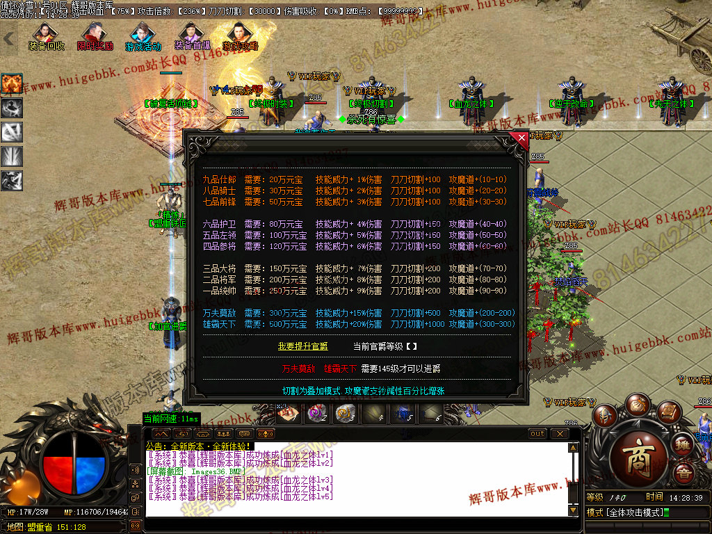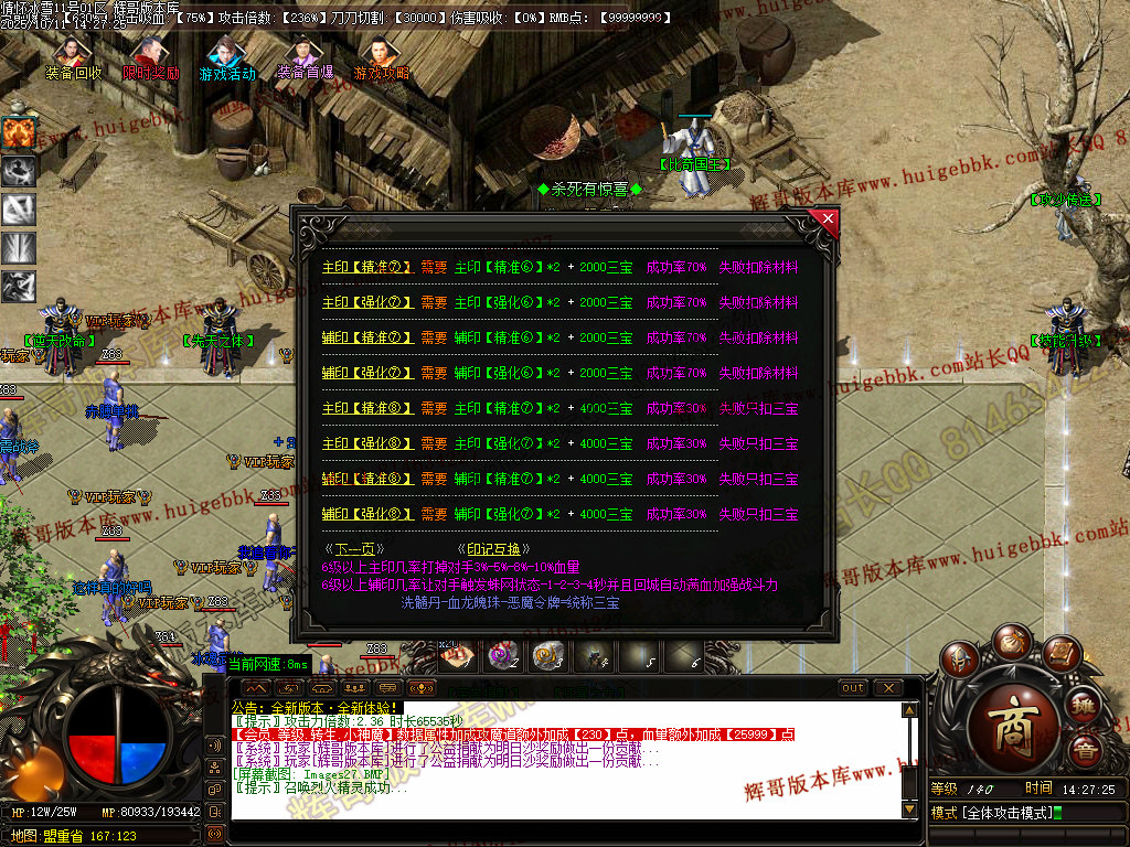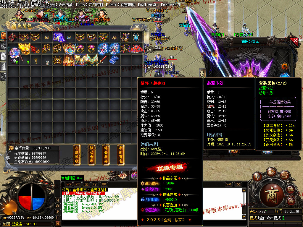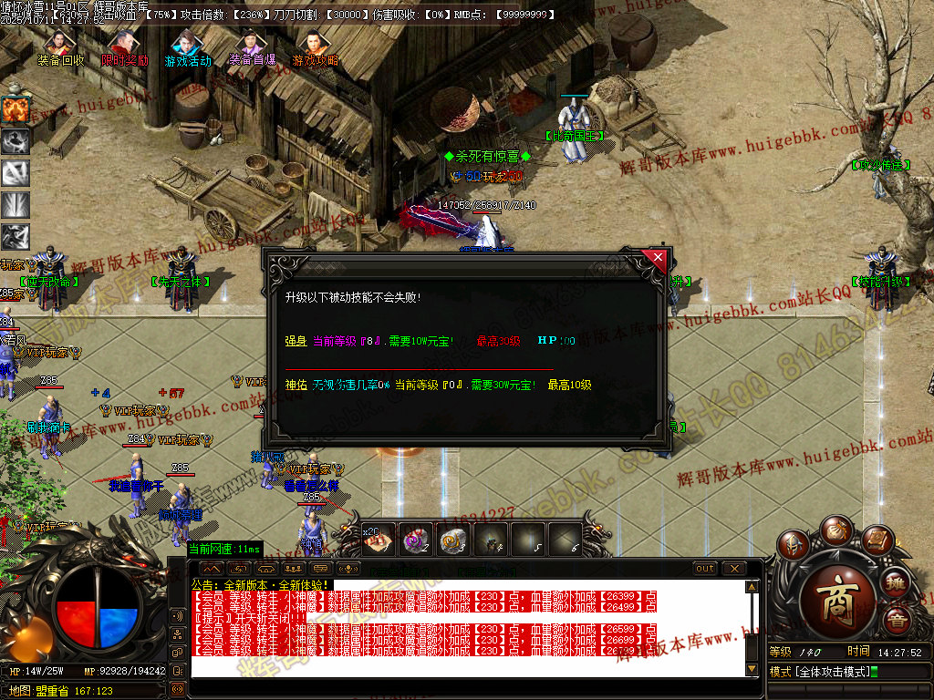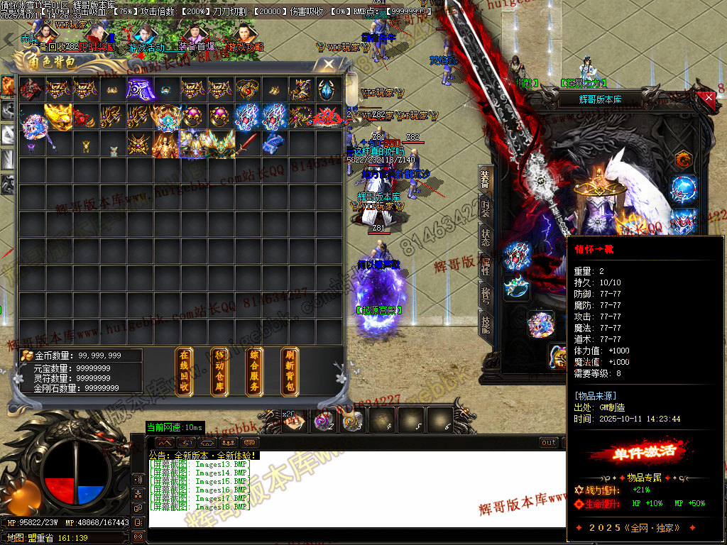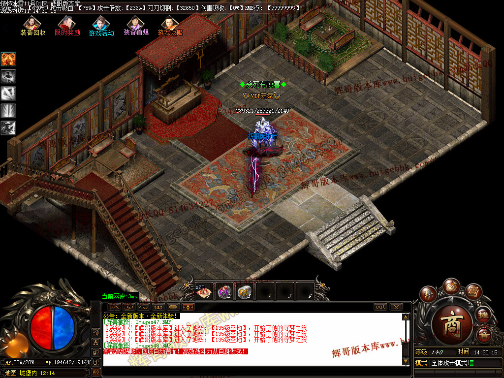 [装备血祭]:人物转生8转可激活人物倍功属性,杀人越货必备.