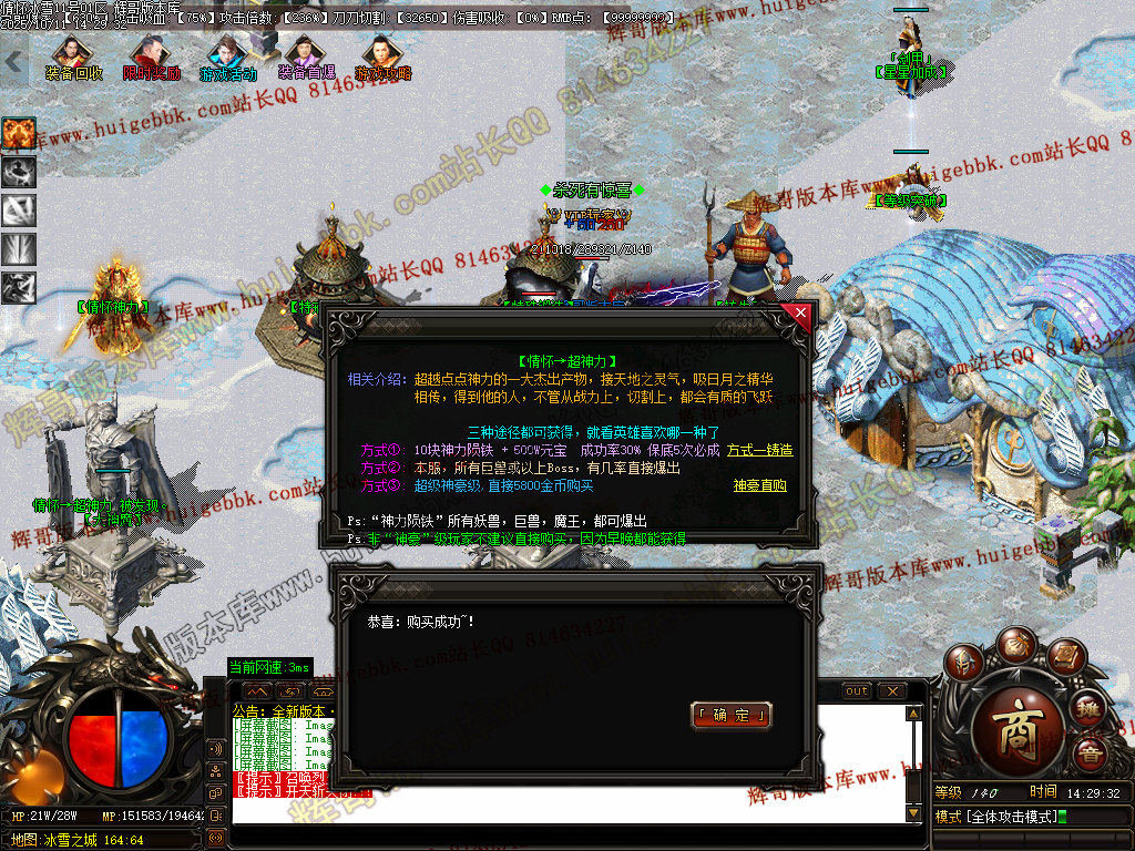 【开区时间】:全新独家攻速君临冰雪版本来袭,独家创新 玩法新颖 诚邀兄弟来战!!!