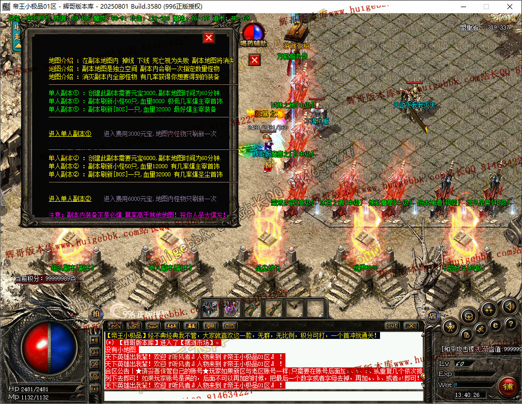 如果发现影响开区的大问题,可联系站长进行免费修复,细节问题自己处理不负责细节问题,