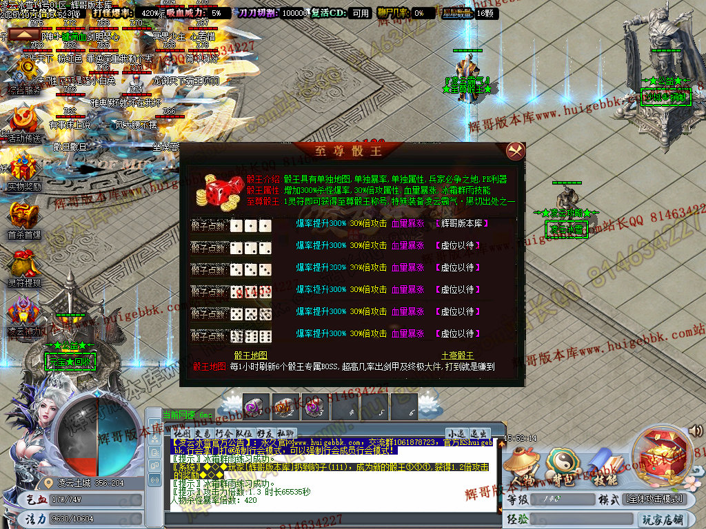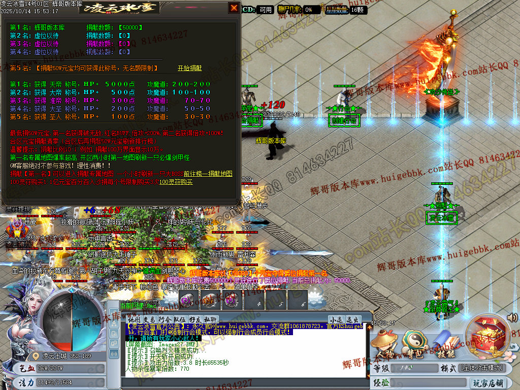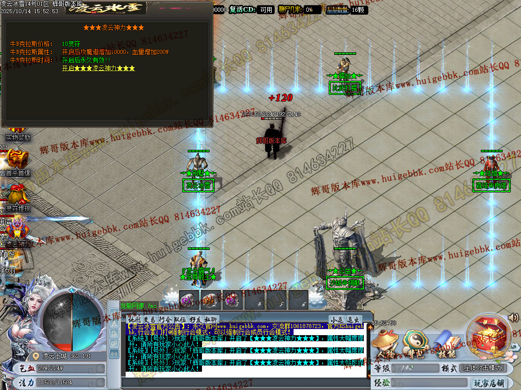 1:测试区天降每区两次 每10分钟 1灵符*20 100万元宝*20 等级丹*2