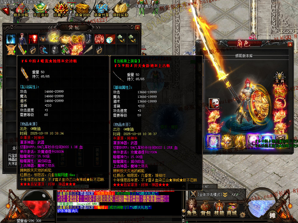 本服任何装备都均可爆到..渾源宝箱和钥匙各种大小BOSS怪物均爆.一切平等.