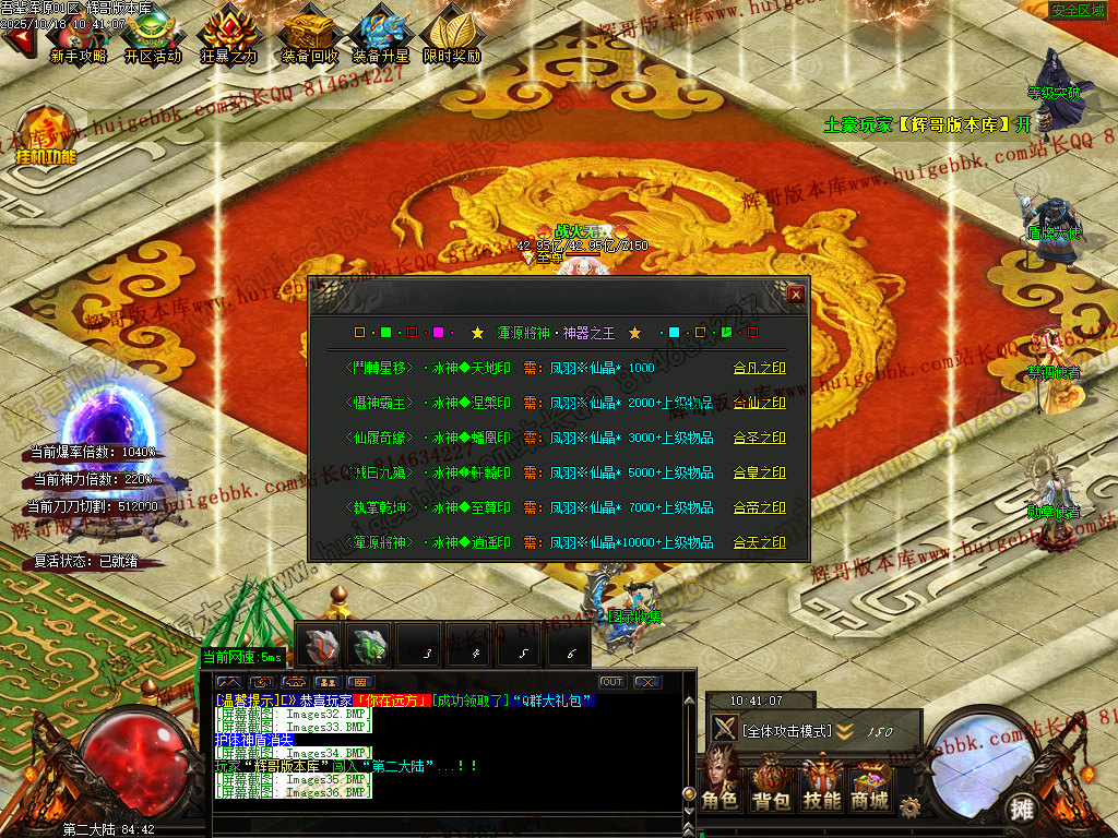 【310元档】(充值280元神晶即可)回馈+狂暴 + 三大路满盾牌+三大陆生肖切割神器+三大陆升级 + 充值300大米(30元)领取沙城捐献