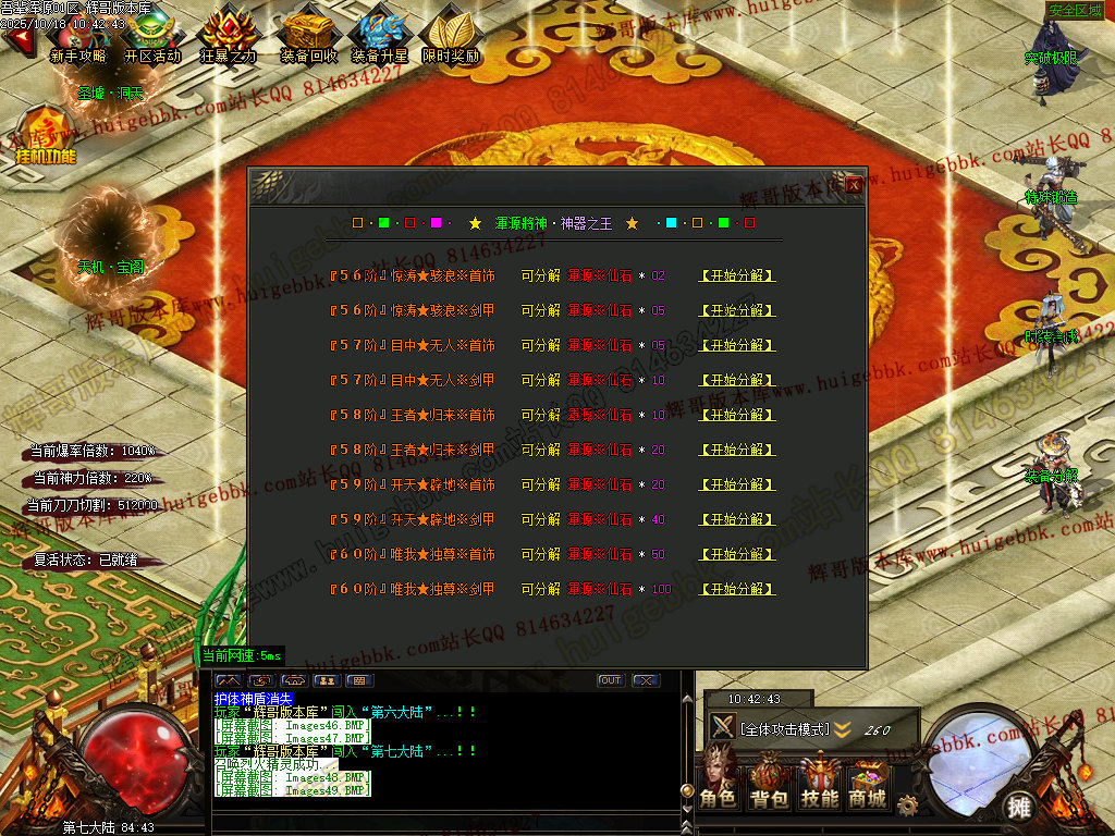 福利BOSS几率掉落任何超级物品和大额元宝大额神晶..一切看脸..