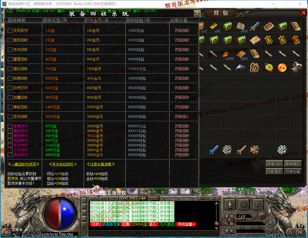 如果发现影响开区的大问题,可联系站长进行免费修复,细节问题自己处理不负责细节问题,