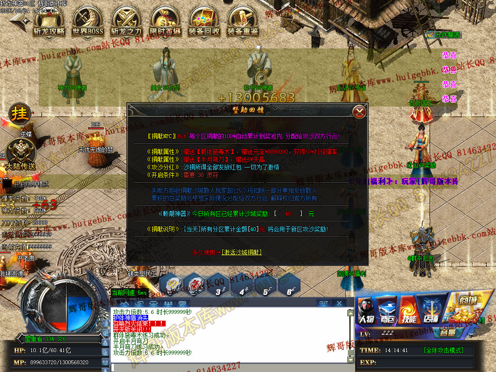 仙豪玩家玩法,搞个沙捐赞助号,搞满盾切割称号.满盾附带鞭尸和称号附带刀刀切割.打怪简直跟杀鸡一样简单..