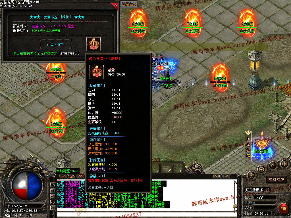 除了活动怪出实物外,武当之主[终级] 1/5的暴率出实物,合区后暴率也不变