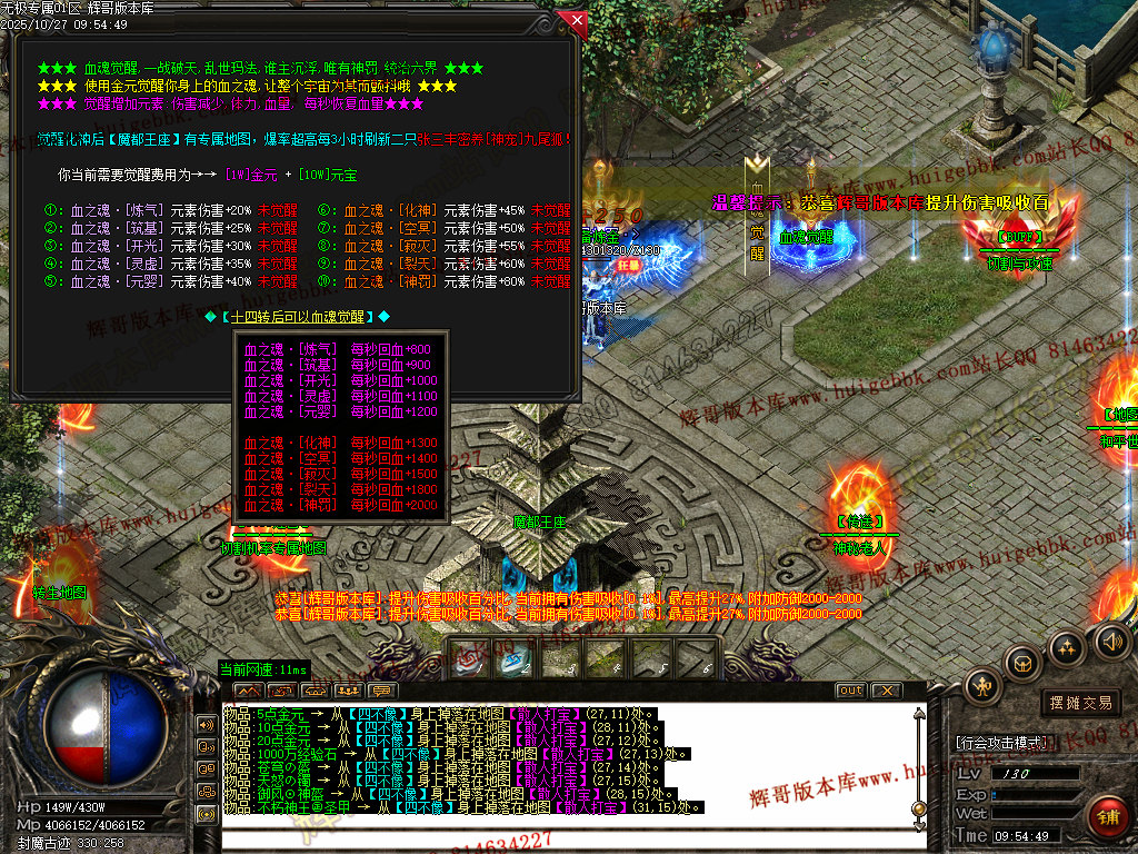 7(血之魂,转生赠送,唯一回血装备,转生越高每秒回血越多,最高为14转,之后血之魂可以继续升级回血,最高级传送属性)