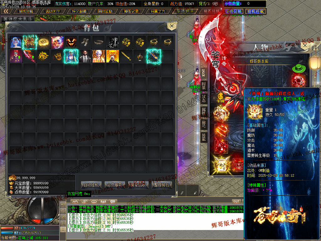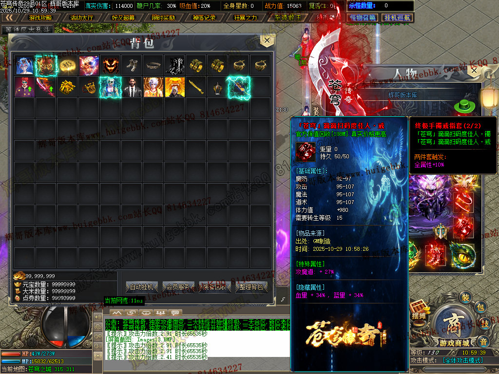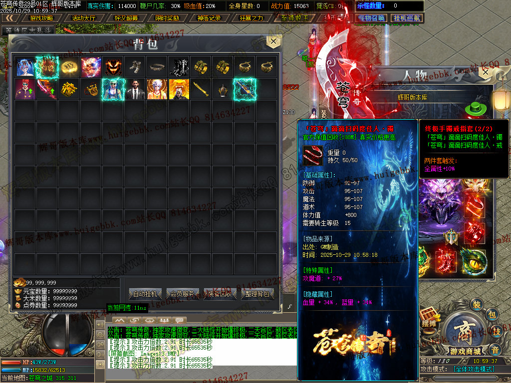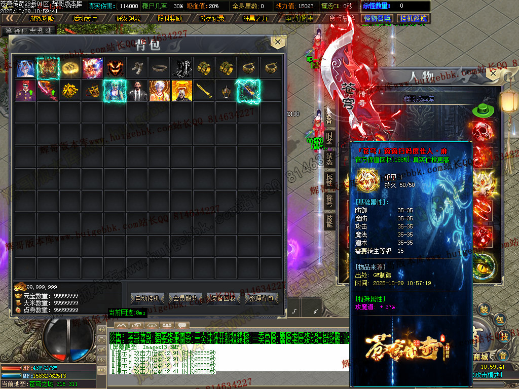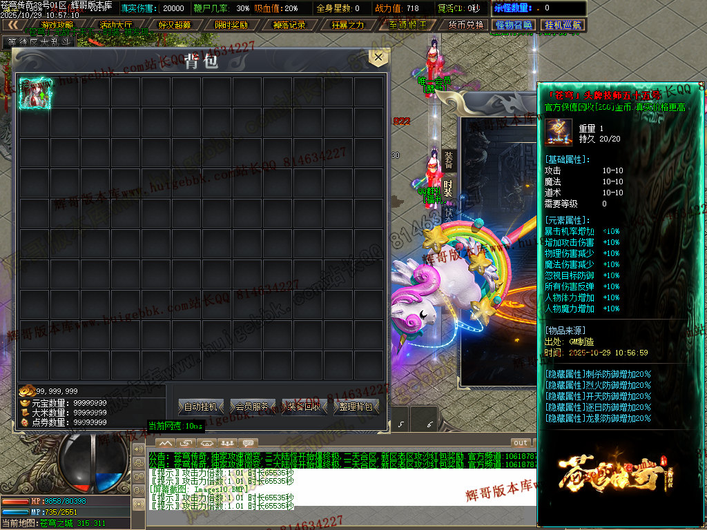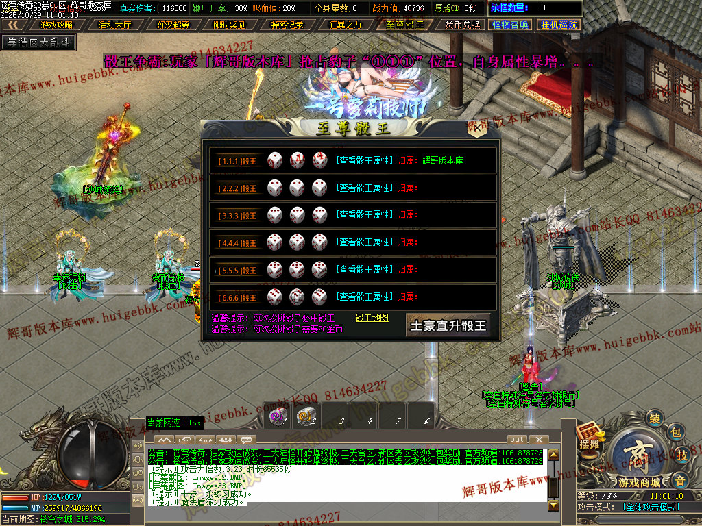 10、一大陆的《上古转轴》可增加玩家打人伤害,属性超强,详情玩家自行看NPC面板介绍!