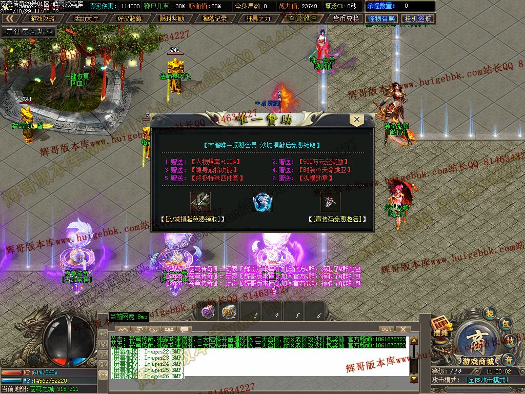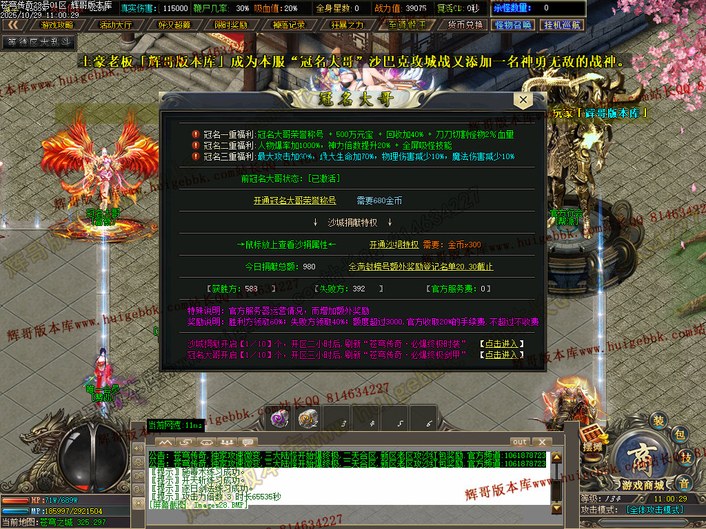 3.冠名大哥免费领取.10米领取.或推广领取唯一赞助(人物爆率加100%,赠送500万元宝奖励,隐身戒指功能.时装天命虎卫.终极特殊4件套 纵横勋章)
